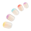 Light nude press-on gel nails featuring multicolor ombré french tips.