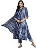 Janasya Women's  Navy Blue Poly Georgette Kurta with Dupatta
