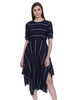 This is a Fully Stitched Reasy to Wear Blouse. It is made from Pure Cotton with Black Ikat Print. The Blouse has Round Neck Design and Elbow Length Sleeves. Pure Cotton Lining for Xtra Comfort is provided and Margins for Xtension are also provided.