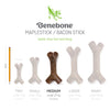 The Benebone Bacon Stick Tougher than real sticks and flavored with real bacon, the Bacon Stick is sure to upgrade your pups chew and fetch game. About Benebone At Benebone, we started with the premise that dogs experience scent and flavor in a way we cant even grasp. So we ditched the neon colors and loud squeaks. Inspired by a dogs powerful sense of smell, we developed a long-lasting durable chew thats jam-packed with real bacon for flavor. Once your dog takes a bite of our USA-made chews, hell be hooked. Were Obsessed with Safety Too Wonder if Benebone is right for your dog? Heres what you need to know. Since its hard, its important that your pup has strong teeth. If youre unsure, check with your vet. Nobody likes an unexpected trip to the dentist. Keep an eye out for wear and tear. Within a month or so, we find that most dogs chew Benebone into submission. See the wear page on our website for helpful photos to determine when to replace yours. Keep away from households with peanut or other allergies. Whats Inside? Nothing but Nylon and Real Bacon for Tantalizing Flavor