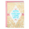 Remind your husband, wife, girlfriend, boyfriend, or romantic partner how much you love them and your life together with a touching anniversary card. A modern design and endearing sentiment make this the perfect way to celebrate another year of loving one another. The Hallmark brand is widely recognized as the very best for greeting cards, gift wrap, and more. For more than 100 years, Hallmark has been helping its customers make everyday moments more beautiful and celebrations more joyful.